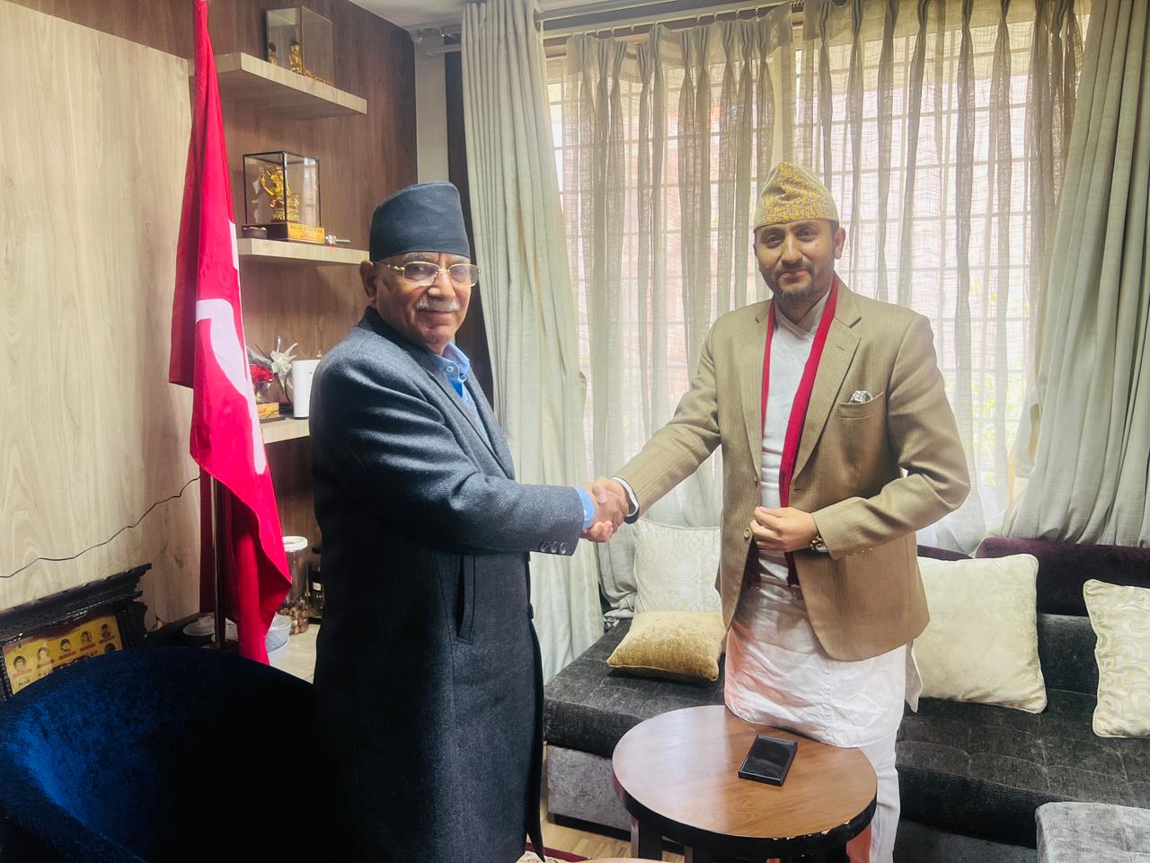 सञ्चारमन्त्री खरेल र प्रचण्डबीच भेटवार्ता
