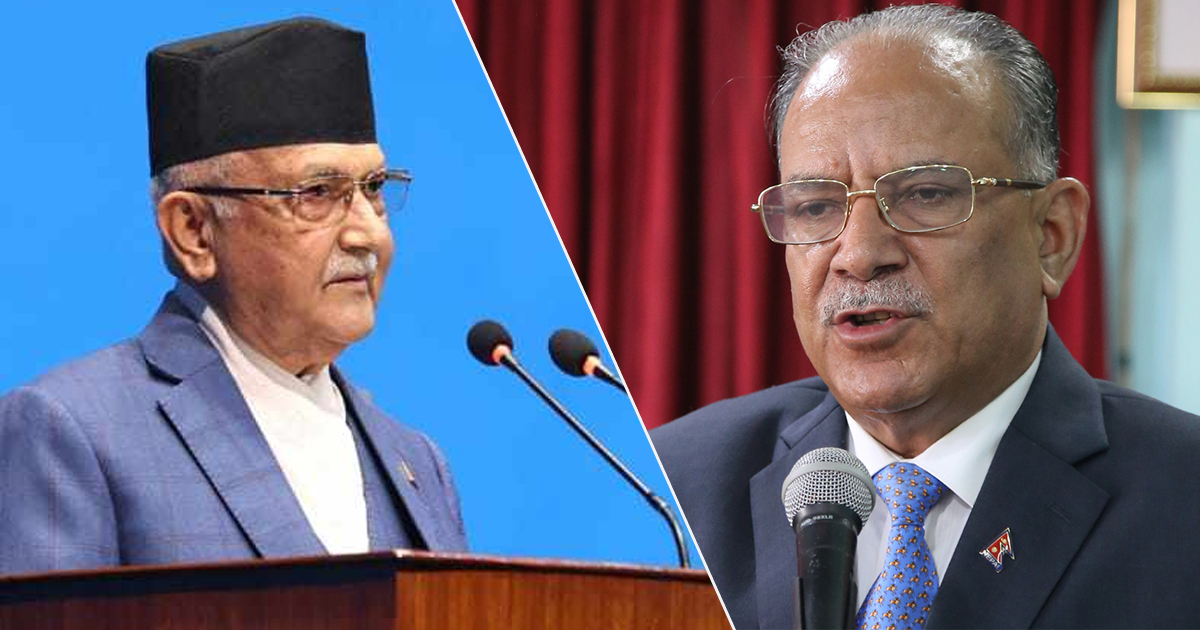 काठमाडौं : नेकपा एमाले अध्यक्ष केपी शर्मा ओली र नेपाली कम्युनिस्ट पार्टी (नेकपा) का संयोजक पुष्पकमल दाहाल ‘प्रचण्ड’बीच आज भेटवार्ता भएको छ। आइतबार भारतको नयाँ दिल्ली जान लागेका प्रचण्डले त्यसअघि एमाले अध्यक्ष ओलीलाई भेटेका हुन्। ओली सचिवालयले उनीहरूको भेटलाई अनौपचारिकरुपमा पुष्टि गरेको छ। नेपाली समाज भारतको आयोजनामा नयाँ दिल्लीमा हुने ‘एकता सन्देश सभा तथा साक्षात्कार कार्यक्रम’ मा सहभागी हुन प्रचण्ड आज त्यसतर्फ जान लागेका हुन्।