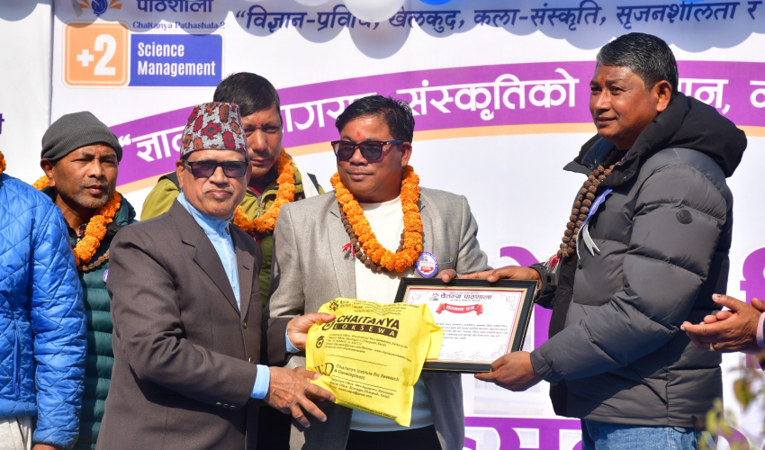 निर्माण व्यवसाय तथा सामाजिक सेवाको क्षेत्रमा निष्ठा, इमानदारी र गुणस्तरीय कार्यशैलीमार्फत समाजमा सकारात्मक पहिचान स्थापित गर्दै आएका समाजसेवी छेदुलाल चौधरीलाई चैतन्य दोस्रो विद्यार्थी महोत्सव–२०८२ को अवसरमा ‘चैतन्य प्रेरणादायी समाजसेवी सम्मान’ प्रदान गरिएको छ।