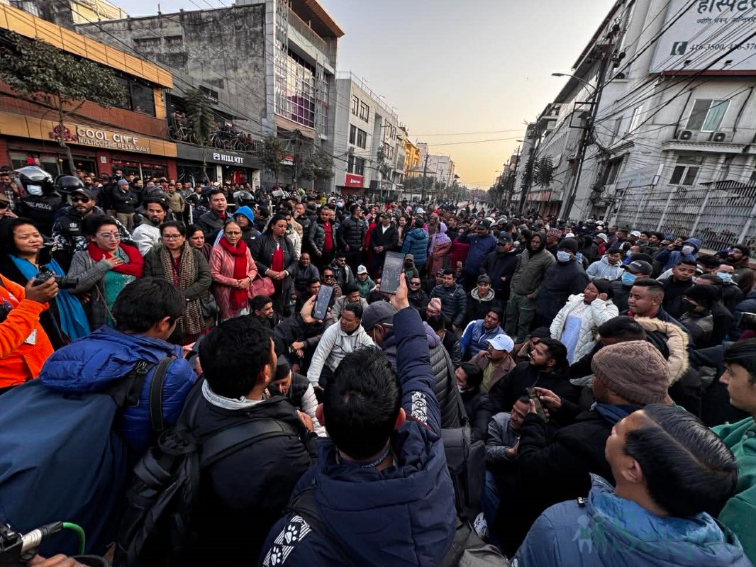 मूल गेट बाहिर पनि गगन थापा र शेरबहादुर देउवा पक्षका कार्यकर्ताहरूले प्रदर्शन गरेका छन्।