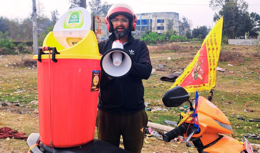 लेखकले अन्य उम्मेदवारभन्दा फरक शैली अपनाउँदै चुनावी प्रचार गरिरहेका छन्। उनले प्रयोग गर्ने स्कुटरको पछाडि ‘डस्टबिन’ राखेर र अगाडि नेपालको झण्डा बोकेर प्रचारप्रसारमा व्यस्त देखिन्छन