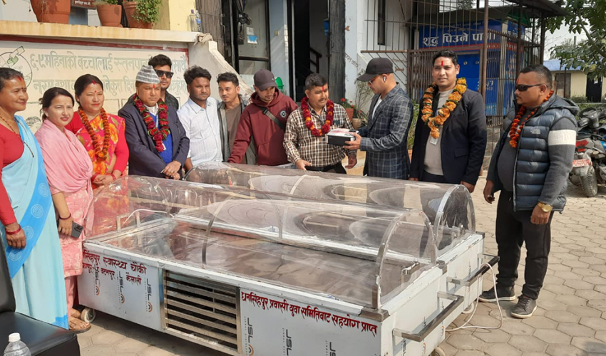 टिकापुरका प्रवासी युवाद्वारा धनसिंहपुर स्वास्थ्य चौकीलाई मर्चरी च्याम्बर हस्तान्तरण
