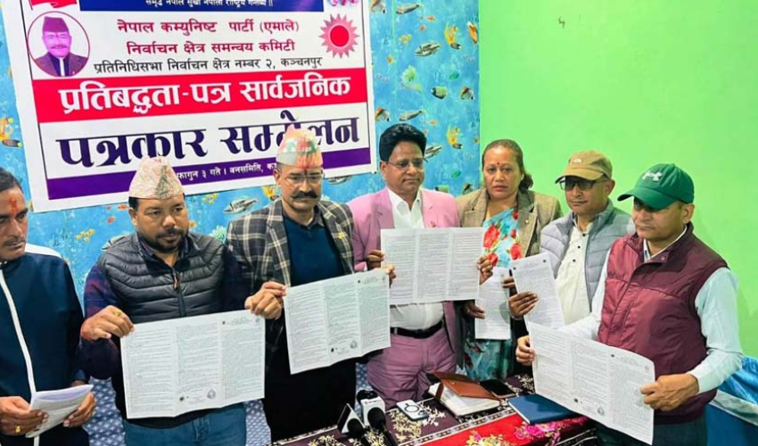 बेलौरीः कञ्चनपुर निर्वाचन क्षेत्र नं. २ बाट नेकपा (एमाले) का उम्मेदवार वचनबहादुर सिंहले चुनावी प्रतिबद्धता पत्र सार्वजनिक गरेका छन्। निर्वाचन मिति नजिकिएसँगै सिंहले निर्वाचन प्रतिबद्धतापत्र सार्वजनिक गरेका हुन्।