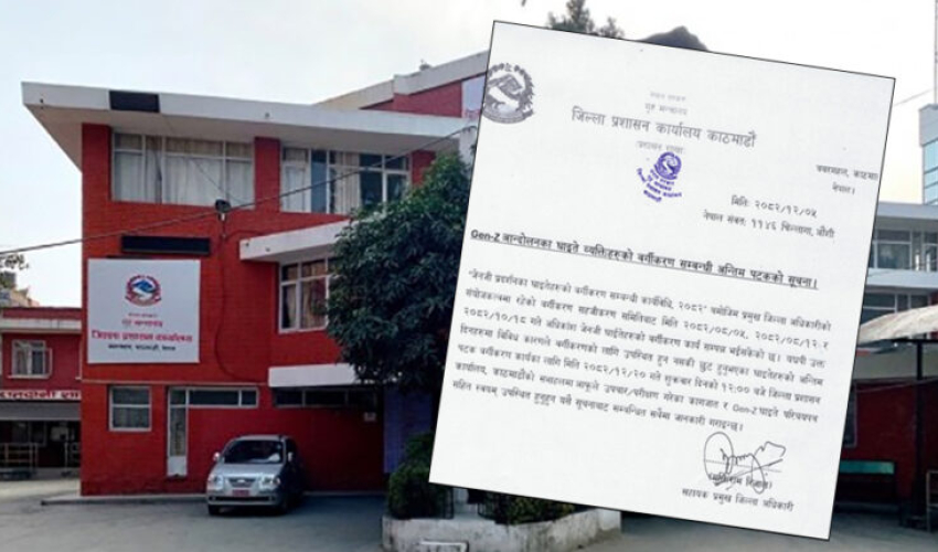 काठमाडौं: जिल्ला प्रशासन कार्यालय काठमाडौंले जेनजी आन्दोलनका क्रममा घाइते भई वर्गीकरण प्रक्रियामा समावेश हुन छुटेका व्यक्तिहरूका लागि अन्तिम अवसर प्रदान गरेको छ।