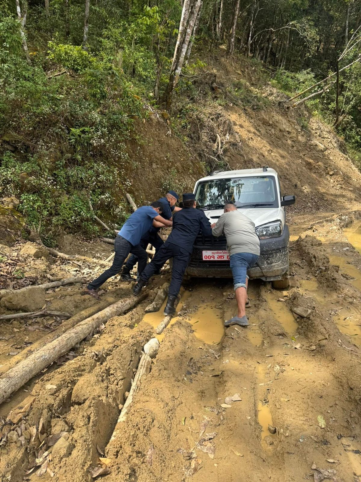 तस्बिरहरूमा कच्ची सडक हिलाम्मे भएको, सवारी साधन बीच बाटोमै रोकिएको तथा स्थानीय र सुरक्षाकर्मीले धकेलेर पार गराउनुपर्ने अवस्था देखिन्छ। यसले यात्रुहरूलाई जोखिमपूर्ण यात्रा गर्न बाध्य बनाएको छ।